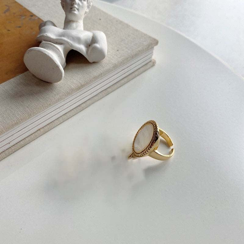 The Seraphina Oval Shell Ring is perfect to make a powerful statement. Large and bold, the textured round oval shell will sure be a head-turner. Mix and match with other Poppy Mae rings, or wear it alone.